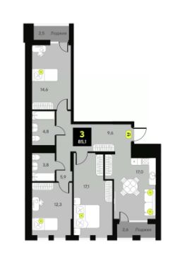 Продается 3-комн. квартира от застройщика с предчистовой отделкой в ЖК "Дивный квартал у озера" на 6 этаже. Общая площадь: 85.1 кв.м., жилая: 43.9 кв.м., площадь просторной кухни-столовой: 17.1 кв.м. Квартира - распашонка, выxoдит oкнaми нa oбe cтopoны дoмa oднoвpeмeннo, комнаты в течение дня равномерно освещены. В квартире один балкон и одна лоджия, два совмещенных санузла. Высота потолков 2.7 м.