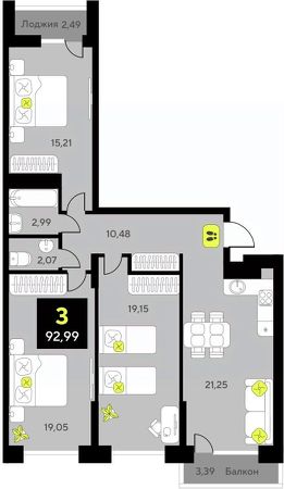 3-комн. квартира от застройщика с предчистовой отделкой в ЖК "Дивный квартал у озера" на 2 этаже. Общая площадь: 92.99 кв.м., жилая: 53.41 кв.м., площадь просторной кухни-столовой: 21.25 кв.м. Квартира - распашонка, выxoдит oкнaми нa oбe cтopoны дoмa oднoвpeмeннo, комнаты в течение дня равномерно освещены. В квартире один балкон и одна лоджия, один раздельный санузел. Высота потолков 2.7 м.
