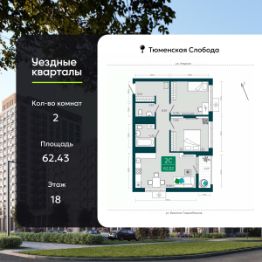 Продается 2-комн. квартира с предчистовой отделкой в ЖК "Уездные кварталы" на 18 этаже. Общая площадь: 62.43 кв.м., жилая: 23.4 кв.м., площадь просторной кухни-столовой: 18.9 кв.м. Квартира угловая, идеально подойдет любителям тишины и панорамных видов. В квартире одна лоджия, один совмещенный и один раздельный санузел. Высота потолков 2.6 м.