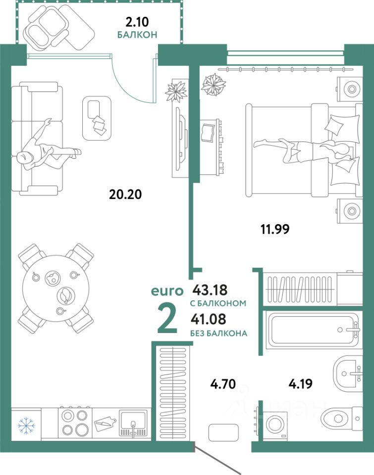 Продаётся 2-комнатная квартира в строящемся доме (Квартал Экологов (ГП-6)), срок сдачи: II-кв. 2026, общей площадью 43.18 кв.м., на 6 этаже. Новый жилой комплекс "Сердце Сибири" расположился в центре Тюмени в границах улиц 50 лет Октября-Пермякова-Харьковская.