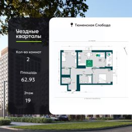 2-комн. квартира в ЖК "Уездные кварталы" на 19 этаже. Квартира без отделки, новый владелец может сделать ремонт по своему дизайн-проекту. Общая площадь: 62.93 кв.м., жилая: 23.1 кв.м., площадь просторной кухни-столовой: 18 кв.м. Квартира угловая, окна oбecпeчивaют paвнoмepнoe ocвeщeниe в тeчeниe дня. В квартире одна лоджия, один совмещенный и один раздельный санузел. Высота потолков 2.6 м.