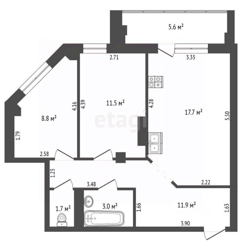Большая кухня — 17.7 м², просторная прихожая, застеклённый балкон.