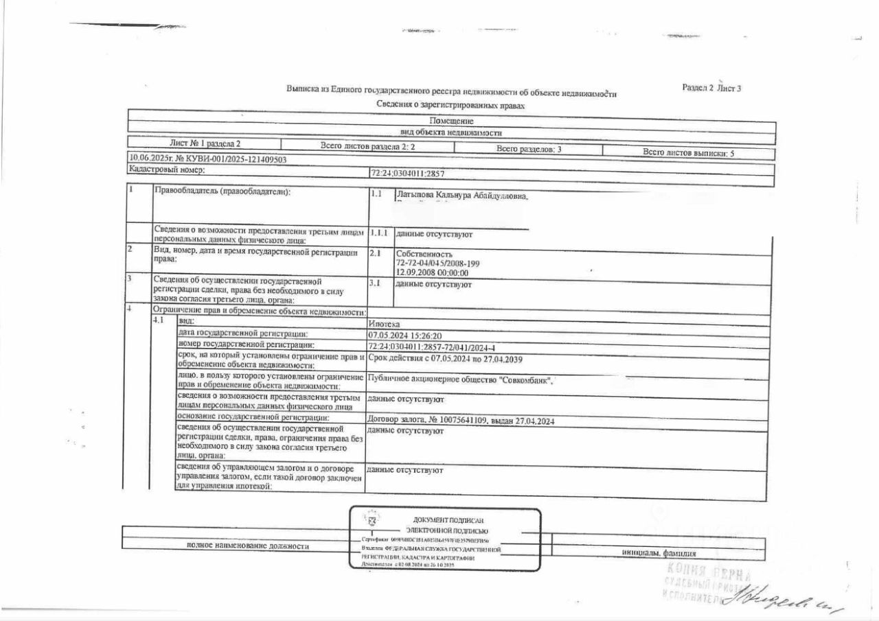 Должник: Латыпова К.А., собственник: Латыпова К.А. Лот: Жилое помещение (квартира), площадь 59,2 кв.м., кадастровый номер: 72:24:0304011:2857, г. Тобольск, 8 мкр., д. 8А, кв. 64. (зарегистрировано 2 человека, задолженность по капитальному ремонту на 08.09.2025 составляет - 866 р.), н/ц: 3900000 р., з-к: 3900 р., код: 0014, рег. 72-010460;
