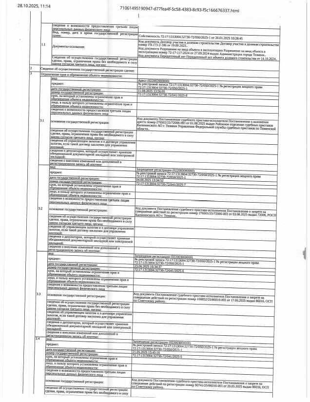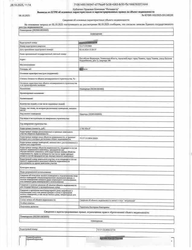 Должник: Дергачев М.О., собственник: Дергачев М.О. Лот: Жилое помещение (квартира), площадь 38,2 кв.м., кадастровый номер: 72:17:1313004:32730, г. Тюмень, ул. Василия Подшибякина, д. 11, кв. 186 ( сведения о зарегистрированных лицах и задолженности по капитальному ремонту - отсутствуют), н/ц: 3808000 р., з-к: 3808 р., код: 0014, рег. 72-010594;