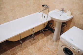 ОСТАЕТСЯ - Все как на фото: кухонный гарнитур со встраиваемой техникой (варочная духовой шкаф, холодильник), стиральная машинка, диван, шкаф.