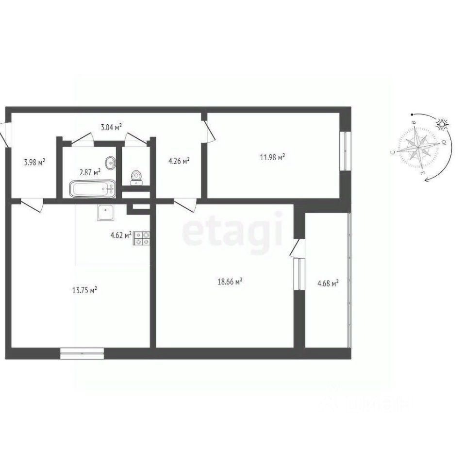 Оцените удобство планировки — большая изолированная кухня-гостиная ( 18,2 кв.м! ) и две спальные комнаты по 12 и 19 кв.м. Одна из них с выходом на застекленный балкон.