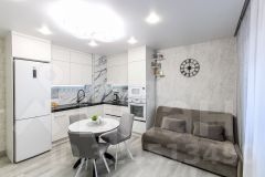 Кухня сделана по индивидуальному заказу в квартире остаётся всраевымые шкафы в спальне и коридоре,кухня и встраиваемая техника микроволновка, духовой шкаф, индукционная варочная панель, вытяжка, раковина с очистителям воды с обратным осмосом, в ванной комнате шкафчик с подсветкой, раковина под стиралку, ширма стеклянная для ванны.