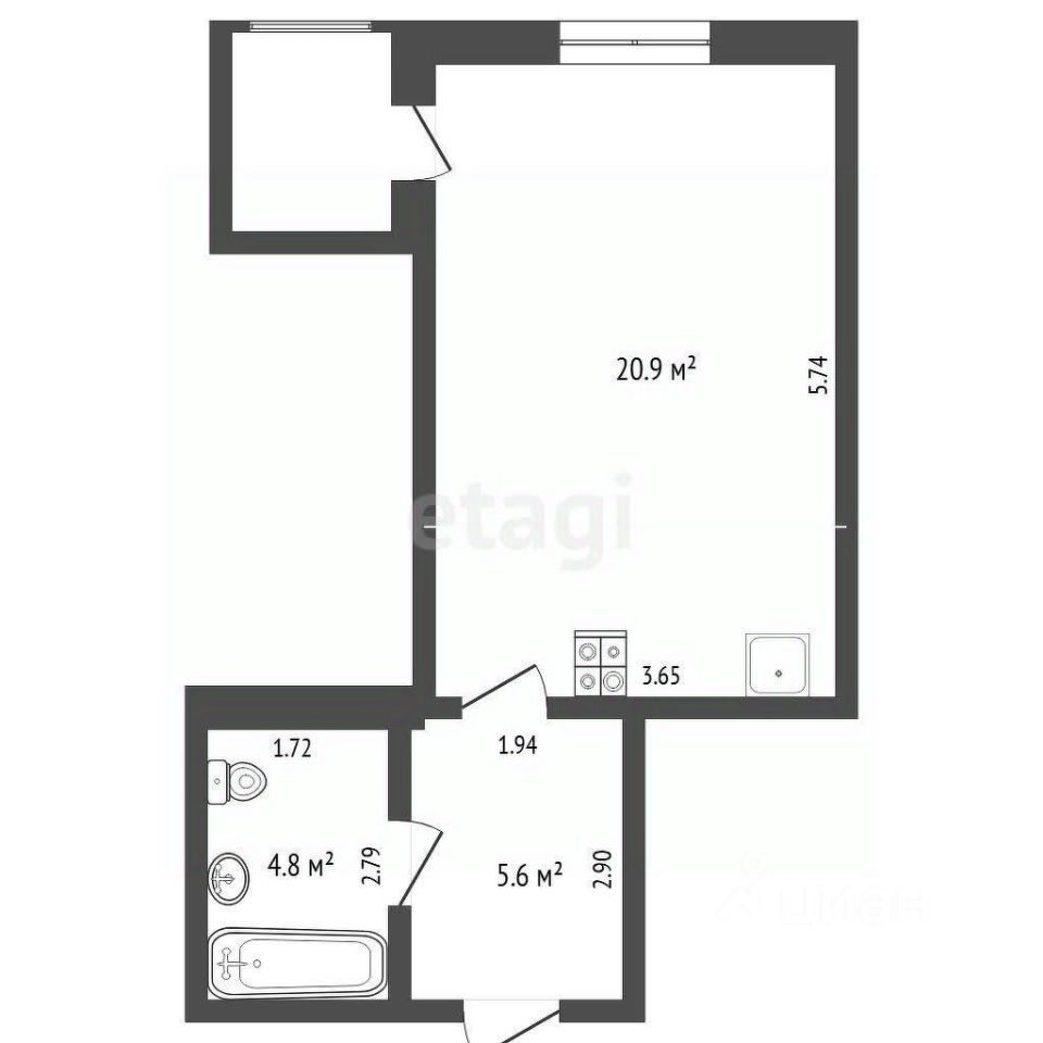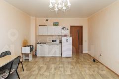 Площадь квартиры 33.4м2, просторный санузел облицован кафелем, кухонный гарнитур с техникой, кондиционер, застекленный балкон.