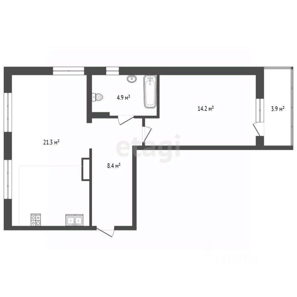 Характеристика квартиры: - 4-й этаж; - Общая площадь 52,85 м2; - Площадь кухни- гостиной - 21,3 м2, спальня - 14,21 м2, с - Площадь санузла - 4,96 м2; - Площадь балкона -3,9 м2;