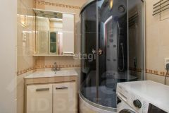 Санузел раздельный, полностью выложен керамической плиткой, душевая кабина.