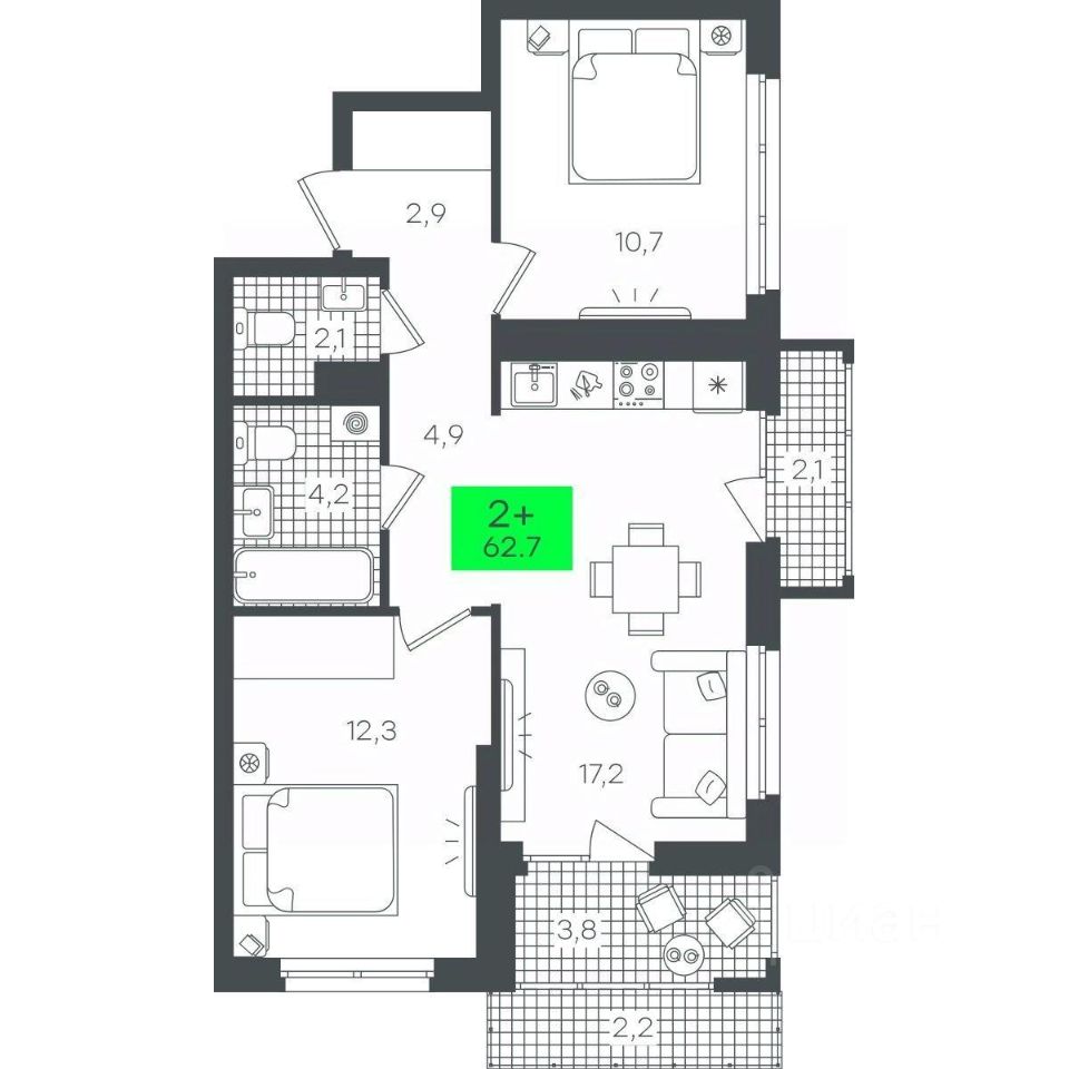 Продаётся 2-комнатная квартира в строящемся доме (В5.1 (Малкова, 19)), срок сдачи: III-кв. 2026, общей площадью 62.79 кв.м., на 6 этаже. Компания 4D приступила к строительству нового жилого комплекса "Гранд квартал". Новый ЖК находится в зеленой зоне Калининского района, южнее микрорайона Тюменская слобода.