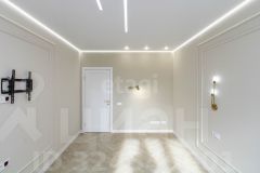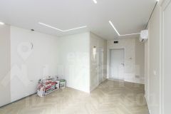 В квартире выполнен ремонт по дизайн проекту. На стенах декоративная штукатурка, на полу квартиры качественный кварц винил с дополнительной шумоизоляцией.В квартире более 40 розеток и выключателей.
