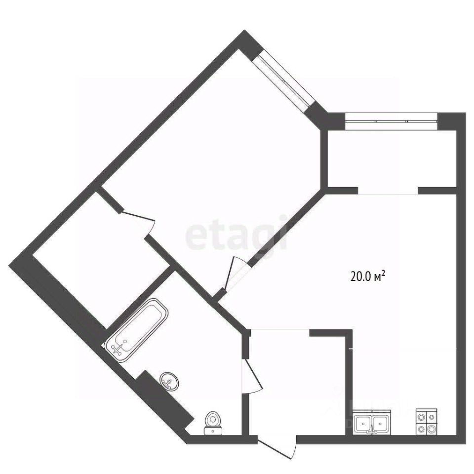 Просторная евро двушка, площадью почти 48 кв.м.