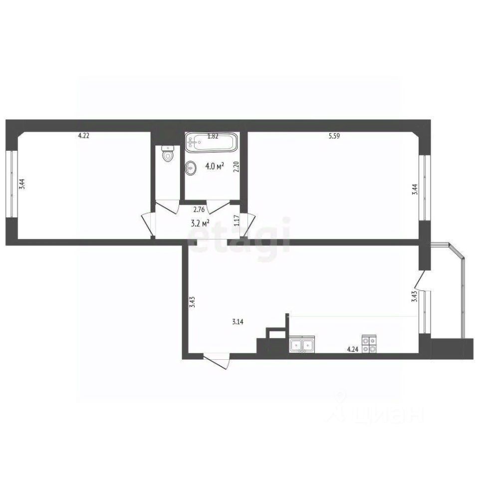 Две просторные комнаты.