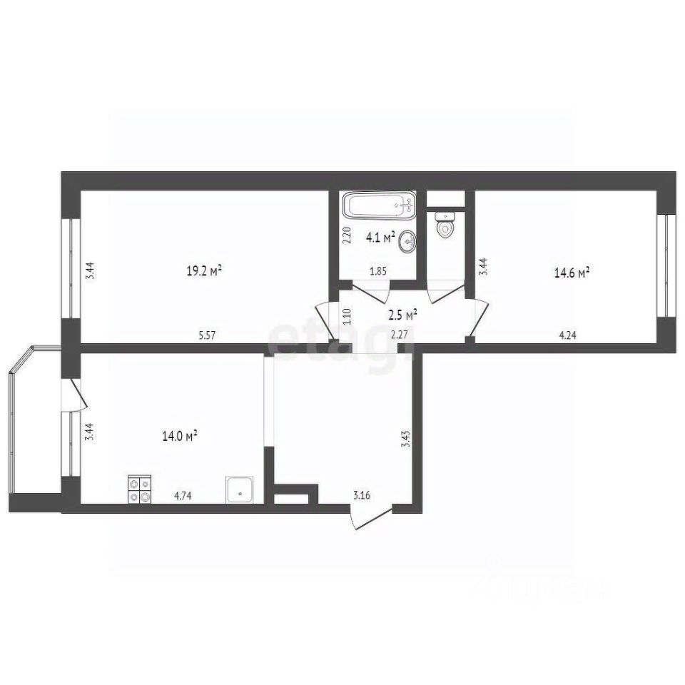 Квартира с функциональной планировкой- кухня-гостиная 17 кв.м. + 2 изолированных комнаты. В родительской спальне есть хорошая гардеробная.