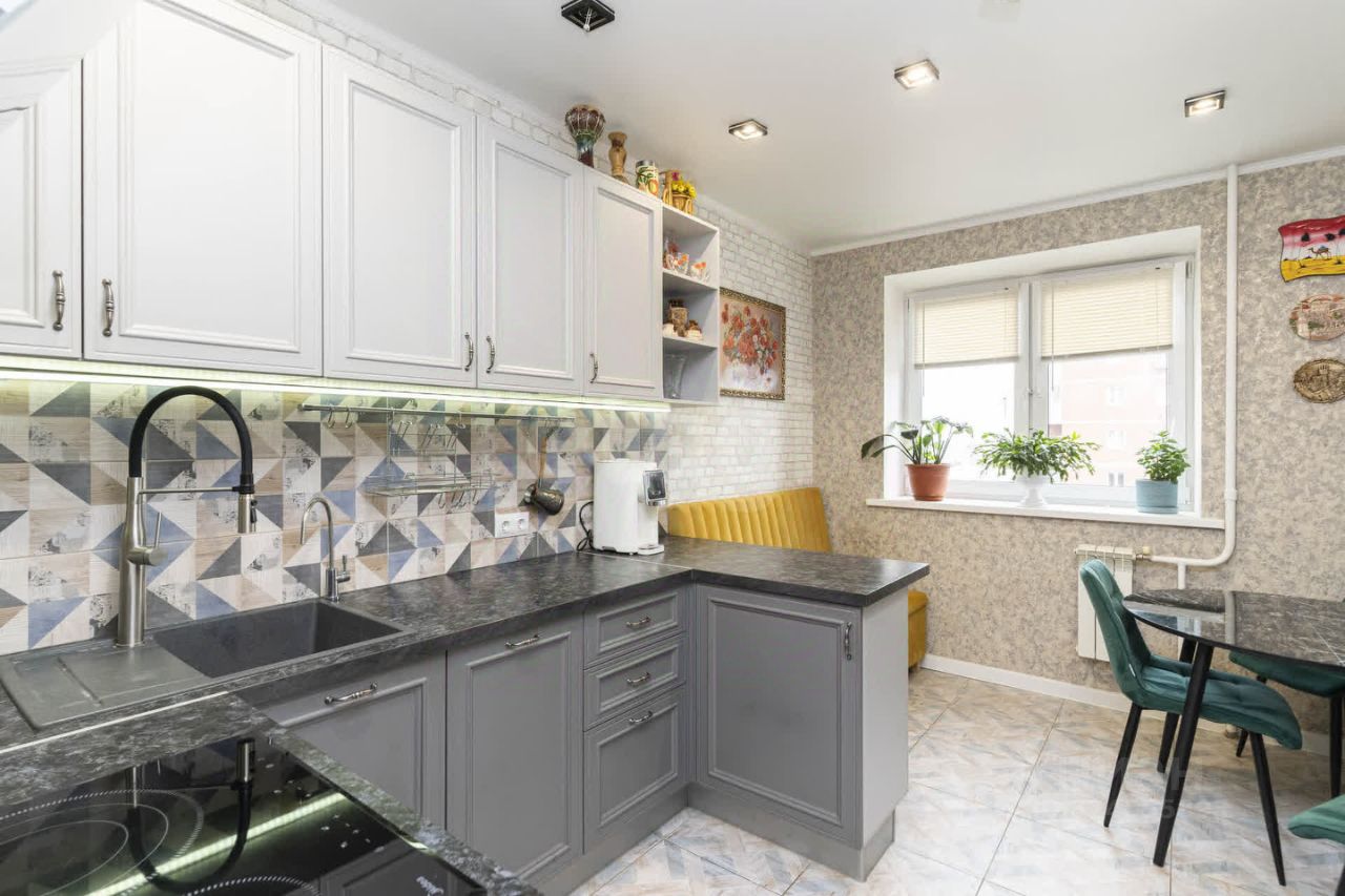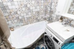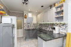В квартире остается встроенная кухня с варочной панелью, духовым шкафом, вытяжкой, холодильником и посудомоечной машиной. Раковина оборудована измельчителем пищевых отходов, что повышает уровень комфорта.