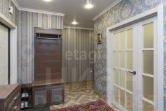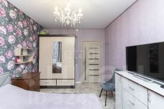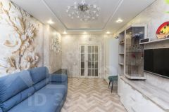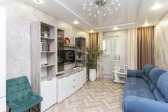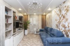 Квартира выполнена с современным ремонтом: стены оклеены качественными обоями, полы покрыты линолеумом, установлены натяжные потолки с точечными светильниками. Входная и межкомнатные двери подобраны с учетом долговечности и эстетики. Санузел раздельный, полностью облицован кафельной плиткой. Особенность квартиры — просторная застекленная лоджия площадью более 15 м² с подогревом пола и выведенным электричеством, что позволяет использовать ее как дополнительное жилое пространство или зону отдыха. Дополнительное удобство обеспечивает кладовая комната, освобождая основное пространство от лишних вещей.