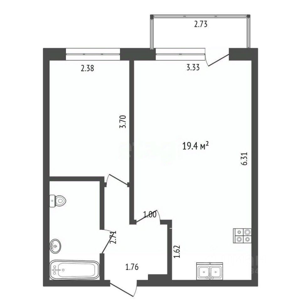 Квартира 1комнатная площадью 35 кв.м. на 5-ом этаже.