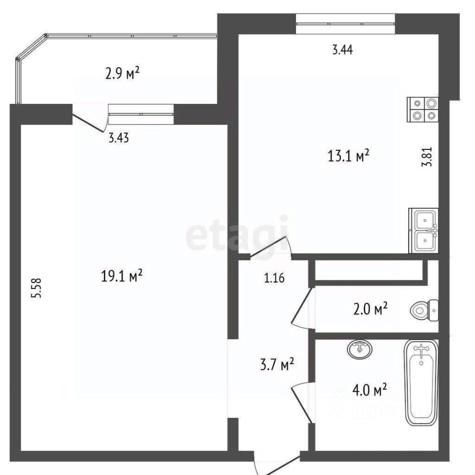 В продаже 1-к квартира площадью 41,9 км.м. в одном из самых востребованных районов города. Планировка функциональная: большая кухня 13,1 кв.м., отдельная комната 19,1 кв.м. с балконом 2,9 кв.м., раздельный с/у. В квартире косметический ремонт: стены оклеены обоями, на полу ламинат, с/у в кафеле. Дом содержится в хорошем состоянии, придомовая территория благоустроена, есть детская площадка и парковочные места. В шаговой доступности поликлиника, аптека, супермаркет и торговый центр. В пяти минутах ходьбы расположена школа. В 300 метрах от дома находится остановка общественного транспорта с маршрутами в центр города и ближайшие районы, а также удобный выезд на основные магистрали.