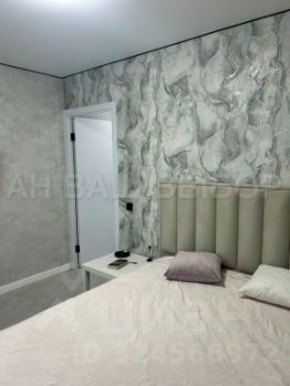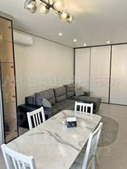 В квартире выполнен дизайнерский ремонт из качественных материалов: натяжной потолок с точечным освещением, на полу кварц винил, санузел совмещён в кафеле, балкон застеклён.