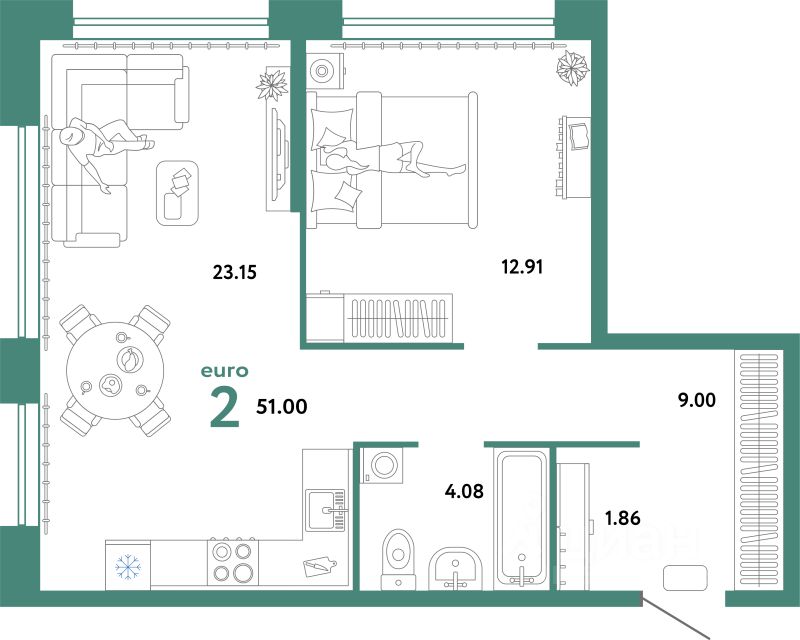 Продаётся 2-комнатная квартира в строящемся доме (Квартал Экологов (ГП-6)), срок сдачи: II-кв. 2026, общей площадью 51 кв.м., на 5 этаже. Новый жилой комплекс "Сердце Сибири" расположился в центре Тюмени в границах улиц 50 лет Октября-Пермякова-Харьковская.