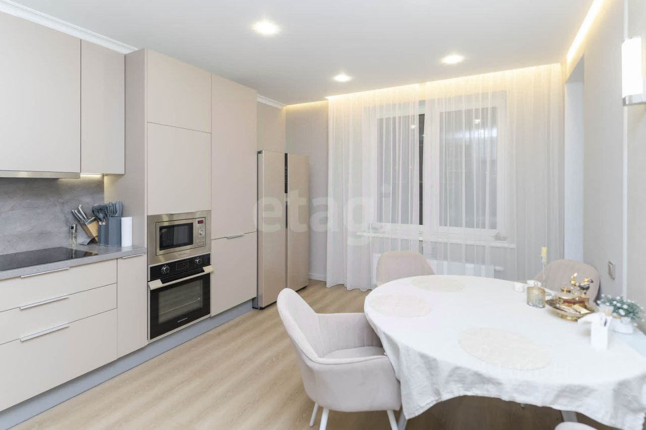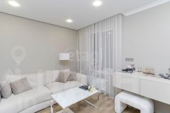 Обьект в отличном состоянии — был выполнен капитальный ремонт с использованием качественных материалов. В прихожей, санузле и на лоджии установлен теплый пол. Квартира продается меблированной (обсуждается при показе) и оснащенной техникой, включая кухонный гарнитур со встроенной техникой, обеденную группу, кровать, комод и проектор.