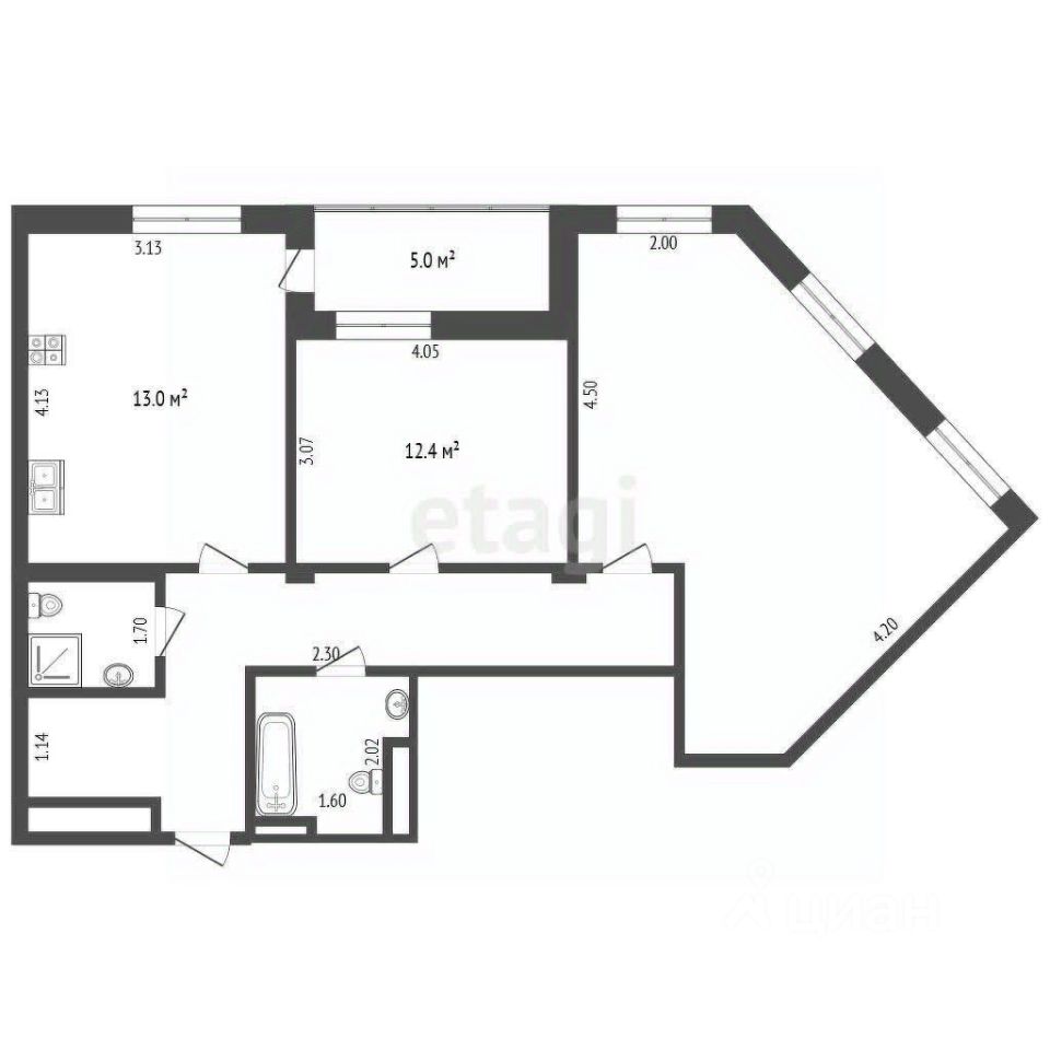 Продается квартира оригинальной планировки 2+ в жилом районе Ново-Патрушево, расположенная в монолитно-каркасном доме "Бриллиант".