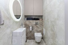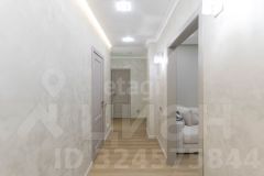 Планировка функциональна и включает просторную прихожую с гардеробной, большую кухню, изолированные комнаты и просторную спальню нестандартной, но удобной формы с гардеробной.