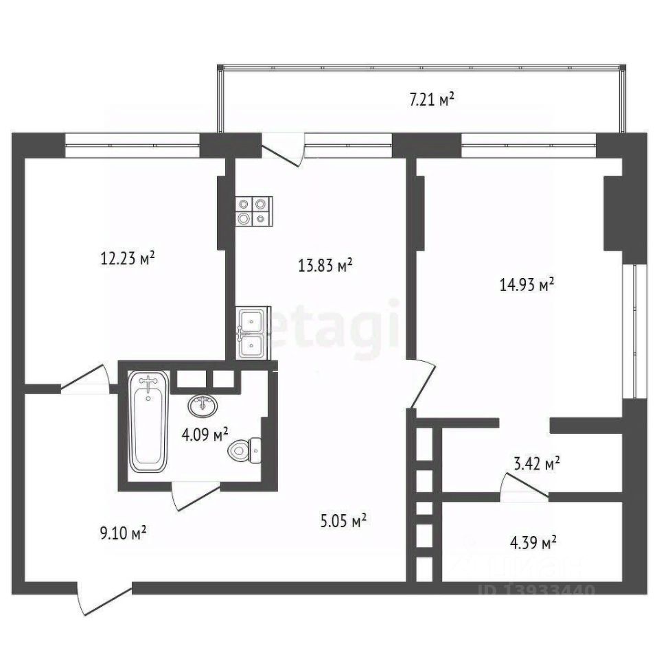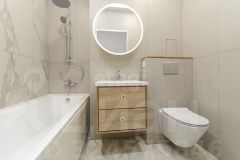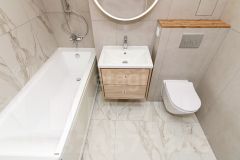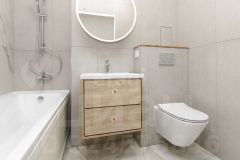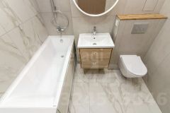Квартира с кухней гостиной и мастер спальней. В ванной комнате уже выполнен ремонт.