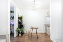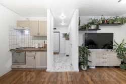 Продается уютная и просторная студия 29.9 м² в 10 этажном доме на 6 этаже. Окна выходят на тихую сторону. Своя газовая котельная, горячая вода круглый год, недорогая коммуналка. Вся мебель и техника остаются новому владельцу. Возможность заехать и жить сразу после покупки. Светлые стены, ламинат под темное дерево, практичная плитка в прихожей и санузле, много розеток. Установлена система автоматической телеметрии для удаленной передачи показаний счетчиков. Продуманная система отопления с подогревом пола от подводки к батареям. Комната совмещена с кухней-гостиной. Очень большой и удобный диван-кровать, тумба для хранения. На кухонной зоне полный комплект техники: варочная панель, вытяжка, холодильник, микроволновка и посудомоечная машина. В прихожей глубокий встроенный шкаф и обувница — много места для вещей. Балкон превращен в уютное и функциональное рабочее пространство. Санузел совмещенный, стиральная машина, полотенцесушитель.