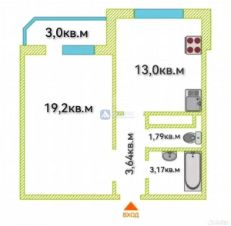 изолированная комната — 19,2 м2 со встроенным шкафомкупе и выходом на лоджию (3,0 м2);