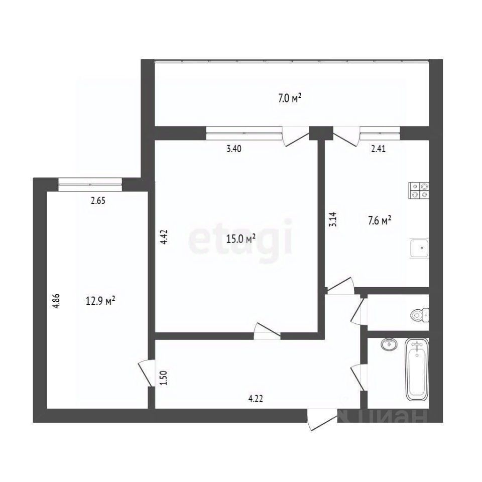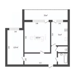В квартире 2 комнаты, кухня и сан. узел раздельный- выложен плиткой, лоджия большая застекленная.