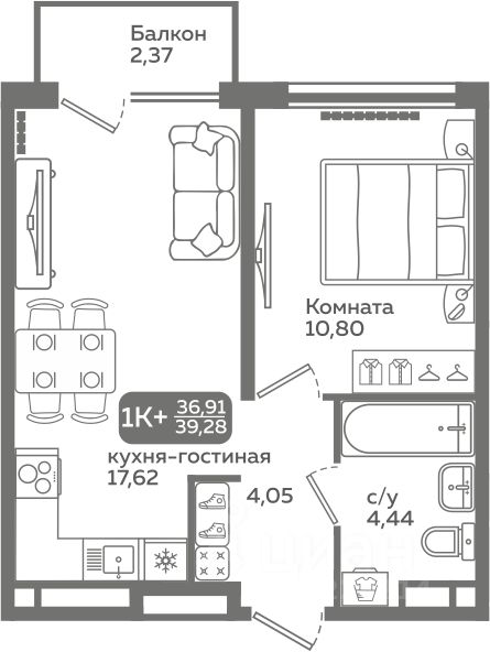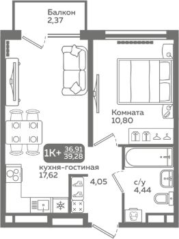 Прямая продажа от застройщика! Продается однокомнатная квартира в строящемся ЖК "Меридиан Слобода", срок сдачи: I-кв. 2027, общей площадью 36.91 м², на 7 этаже из 21. Площадь кухни — 17.62 м².