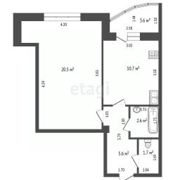 Продается просторная однокомнатная квартира площадью 41.4 кв.м в доме монолитно-каркасного исполнения 2009 года постройки, в одном из самых активных микрорайонов города Тюменский-2.