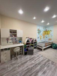 При продаже остается кухонный гарнитур с встроенной техникой: варочная поверхность. посудомоечная машина, вытяжка, встроенные шкафы в коридоре и спальне, мебель в прихожей, кондиционер.