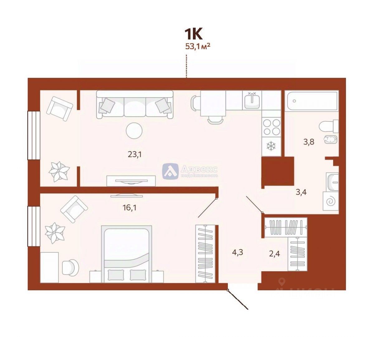Квартира новостройка с одной комнатой на 4 этаже 14-этажного дома площадью 53.07 кв.м. с удобной кухней 23.1 кв.м. идеально подойдет для тех, кому важен комфорт и удобство. Сейчас в квартире проводится черновая отделка, что дает вам возможность добавить индивидуальные штрихи и создать уютное пространство по своему вкусу.