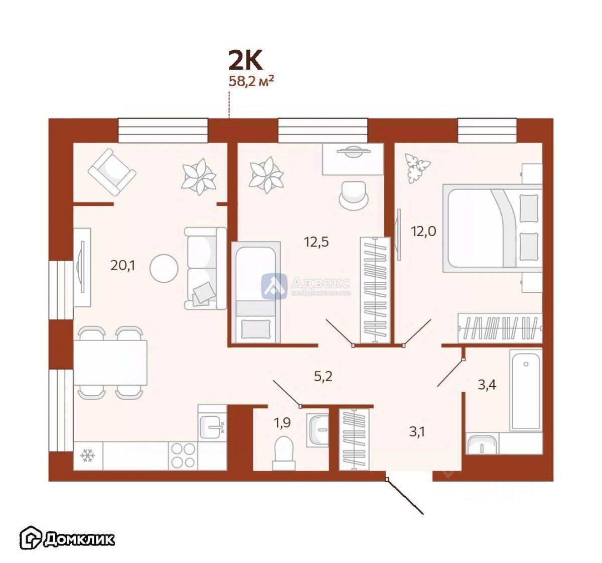 Продаётся квартира в новостройке с двумя комнатами на втором этаже четырнадцатиэтажного дома. Общая площадь квартиры составляет 58.20 квадратных метров, при этом площадь кухни равна 20.1 квадратным метрам. В данный момент проводится черновая отделка, что позволит новому владельцу воплотить в жизнь свои дизайнерские идеи.
