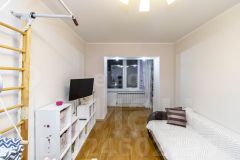 Объект расположен на второй линии от дороги, что обеспечивает тишину и отсутствие уличного шума. Уникальная планировка создает ощущение простора: вместительная и функциональная гардеробная в коридоре, большая кухня-гостиная, комната - правильной прямоугольной формы. В квартире выполнен современный ремонт: паркетная доска в жилых помещениях, плитка в санузле, все элементы интерьера остаются новому владельцу. Установлены подогрев в ванной комнате и на лоджии.