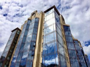 С видом на на улицу две спальни: одна площадью - 15,6 квм, а другая -19,5 квм (лоджия с панорамным остеклением).