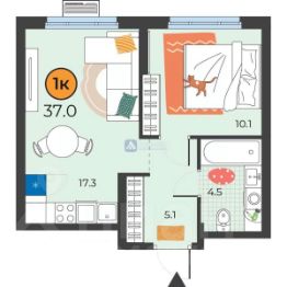 Квартира новостройка с 1 комнатой на 5 этаже 20-этажного дома - это отличное предложение для тех, кому важен комфорт и удобство. Площадь квартиры составляет 37.00 кв.м., при этом кухня занимает 17.3 кв.м.