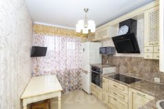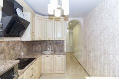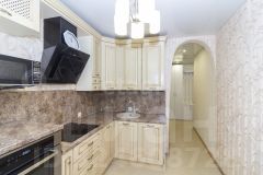 - Остается встроенная кухня с современным гарнитуром, удобной варочной поверхностью, вытяжкой и функциональной посудомоечной машиной.