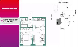 Продается 2комнатная квартира на 4 этаже от застройщика Страна Девелопмент. Площадь квартиры 36,98 кв. м.