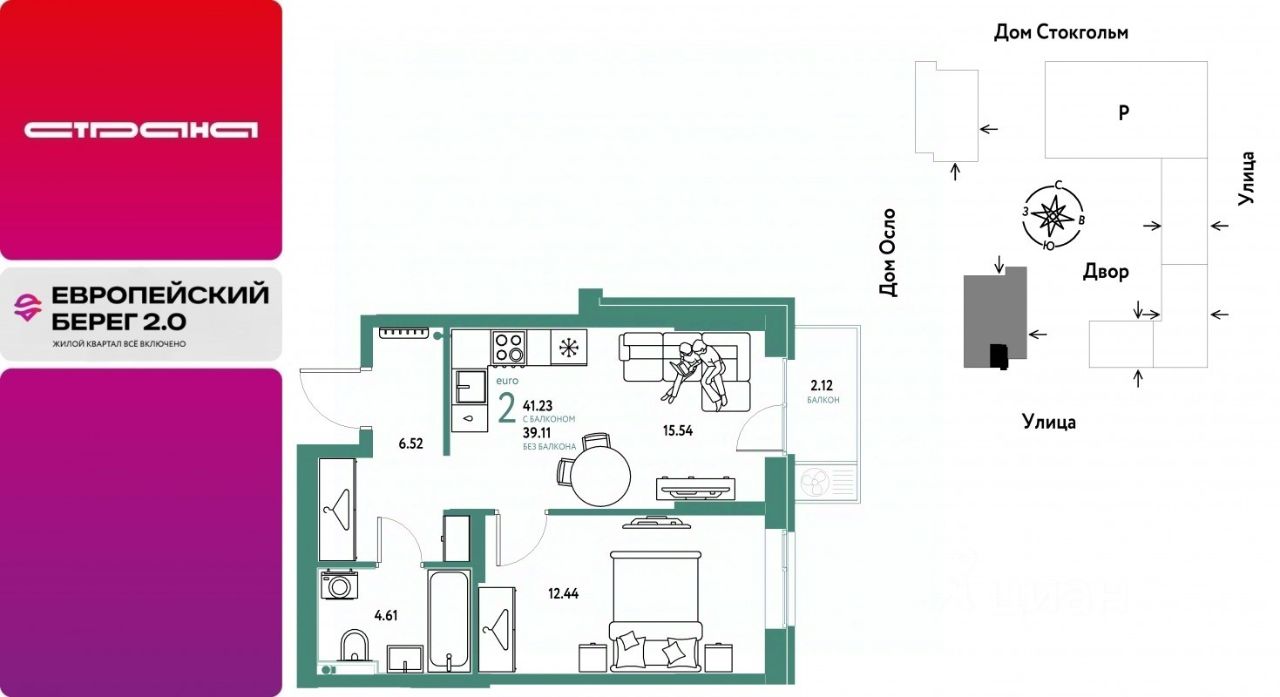 Продается 2комнатная квартира на 9 этаже от застройщика Страна Девелопмент. Площадь квартиры 41,23 кв. м.