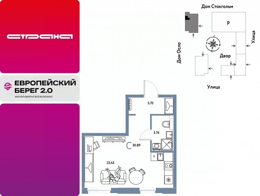 Продается 1комнатная квартира на 10 этаже от застройщика Страна Девелопмент. Площадь квартиры 30,89 кв. м.