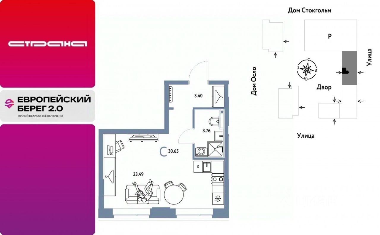 Продается 1комнатная квартира на 3 этаже от застройщика Страна Девелопмент. Площадь квартиры 30,65 кв. м.