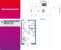 Продается 1комнатная квартира на 5 этаже от застройщика Страна Девелопмент. Площадь квартиры 25,35 кв. м. Стоимость указана без учета акций.