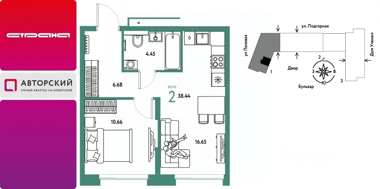 Продается 2комнатная квартира на 2 этаже от застройщика Страна Девелопмент. Площадь квартиры 38,44 кв. м.