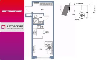 Продается студия на 9 этаже от застройщика Страна Девелопмент. Площадь квартиры 28,76 кв. м.