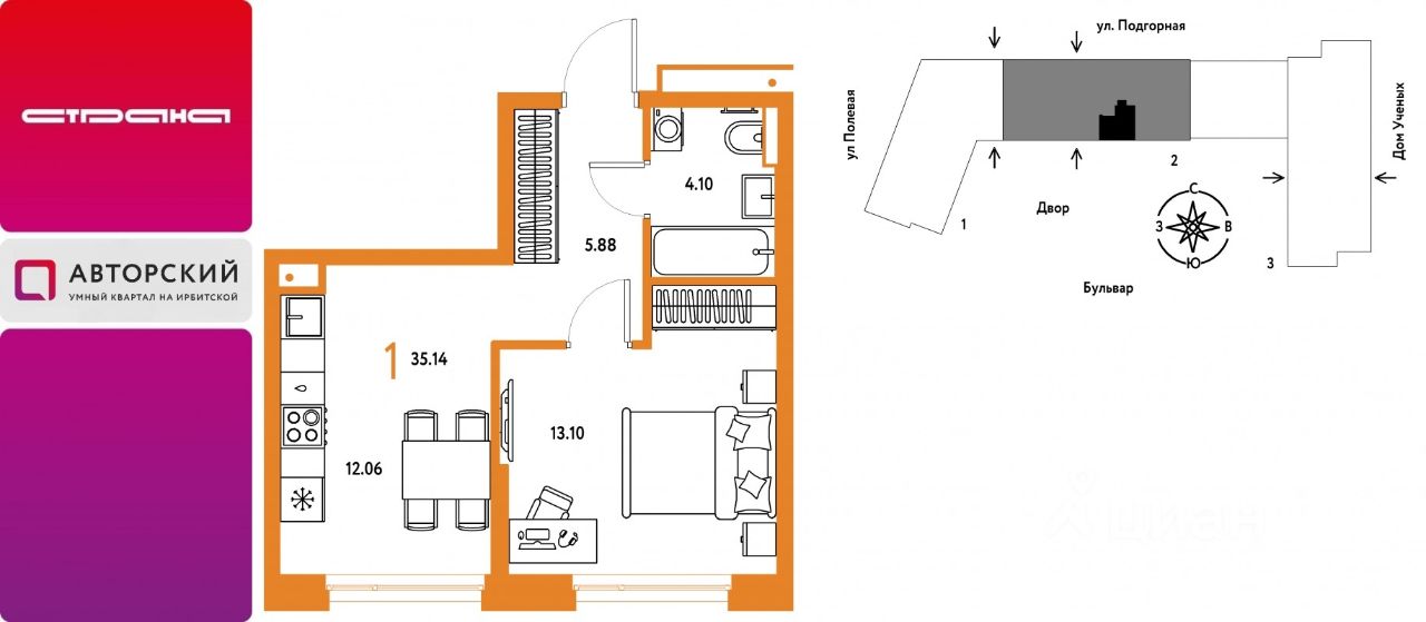 Новая квартира в ЖК "Авторский" напрямую от федерального застройщика "Страна Девелопмент".