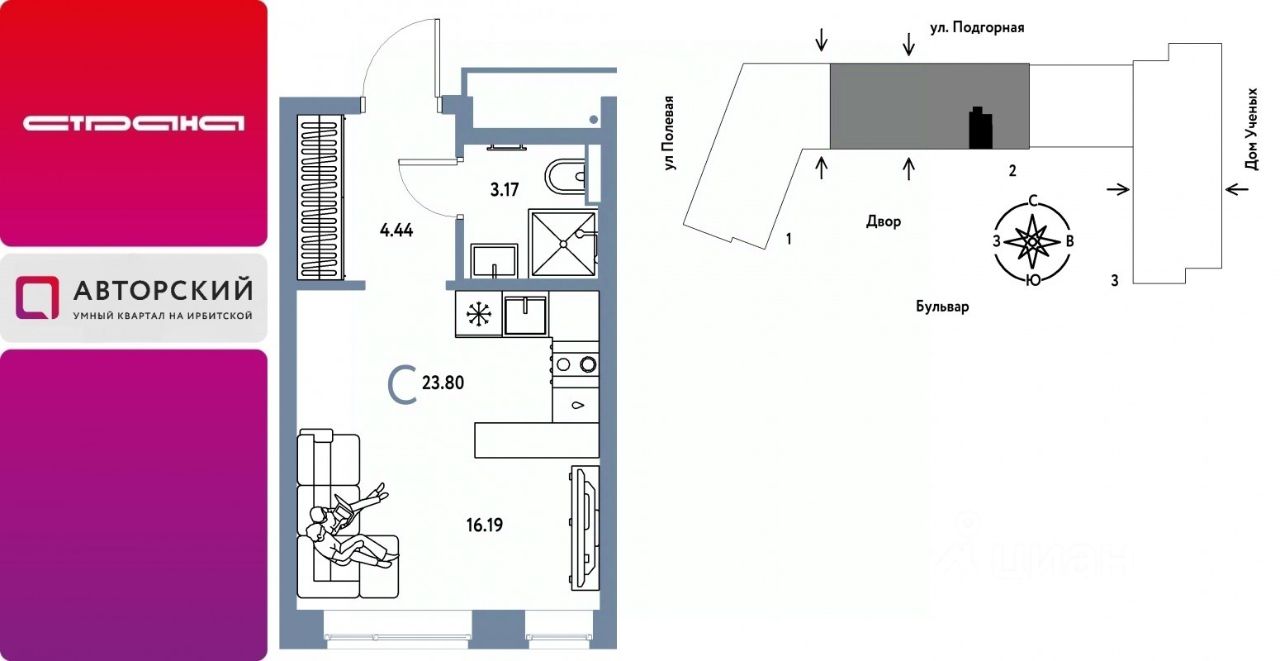 Продается студия на 14 этаже от застройщика Страна Девелопмент. Площадь квартиры 23,8 кв. м.